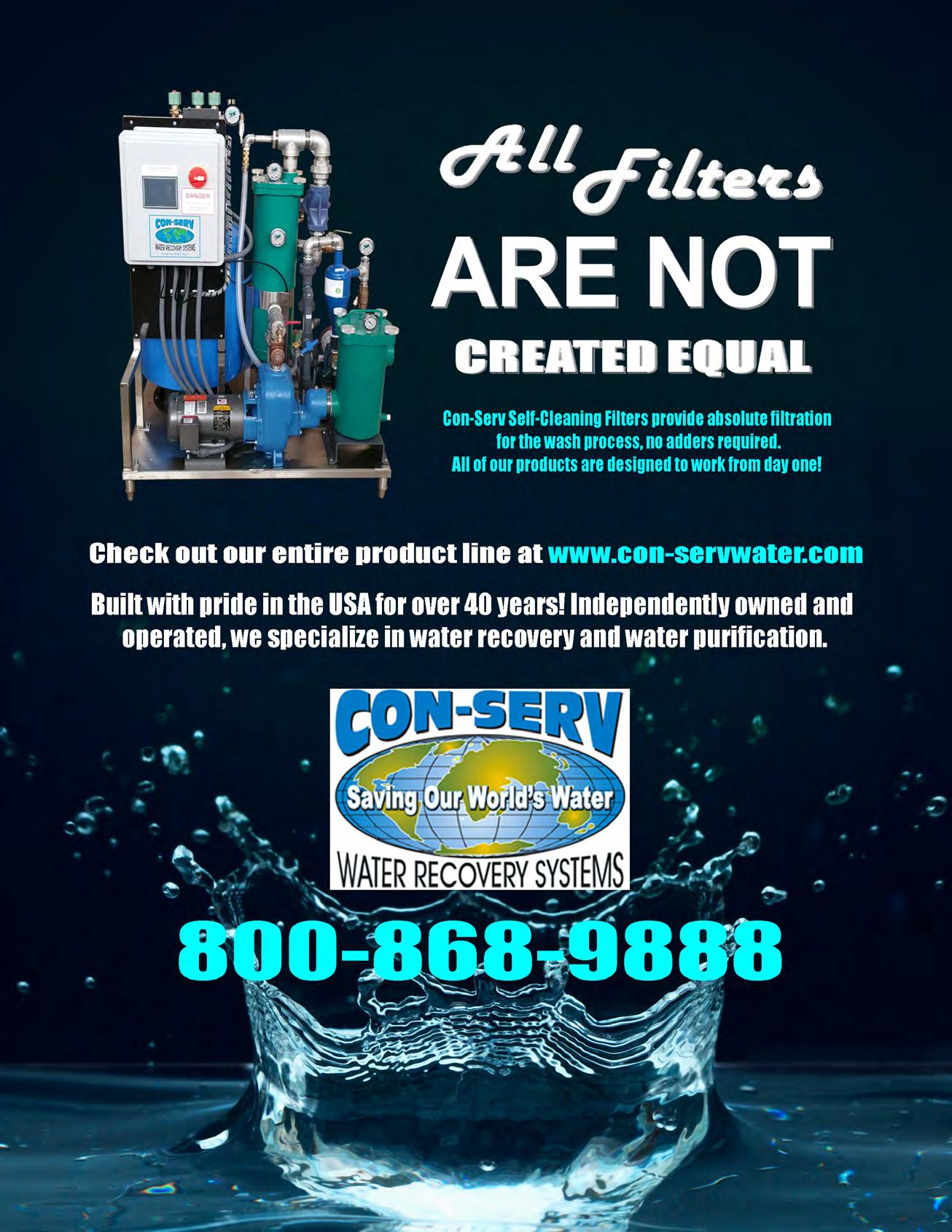 and above par for wash results to reach maximum efficiency. Monitoring the equipment with daily and weekly checks are a must to prevent potential mishaps or out-of-control usage — water, chemistry, etc.