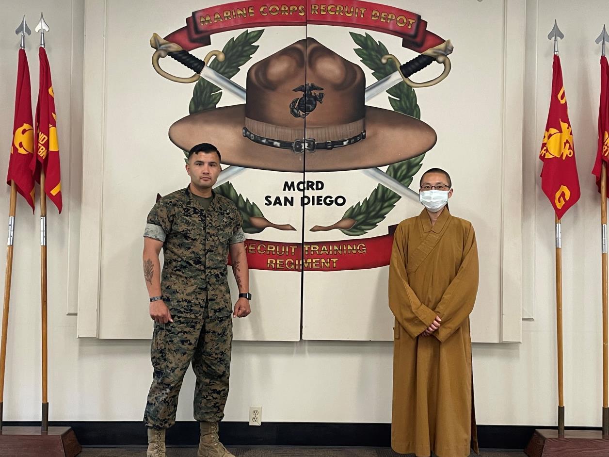 佛光山西方寺位於美國加州南部的聖地牙哥市,此地設有多處軍事基地, 以美國海軍、美國海軍陸戰隊、和美國海岸防衛隊為主。兩艘航空母艦、 數艘核潛艇、和一些其他軍艦亦以此地為母港。海軍陸戰隊在聖地牙哥設 有募兵訓練基地,為全美僅存兩處訓練基地之一。