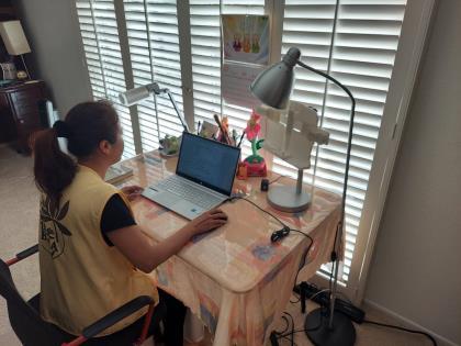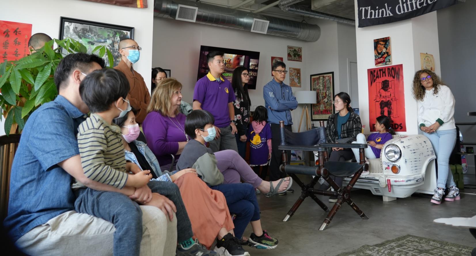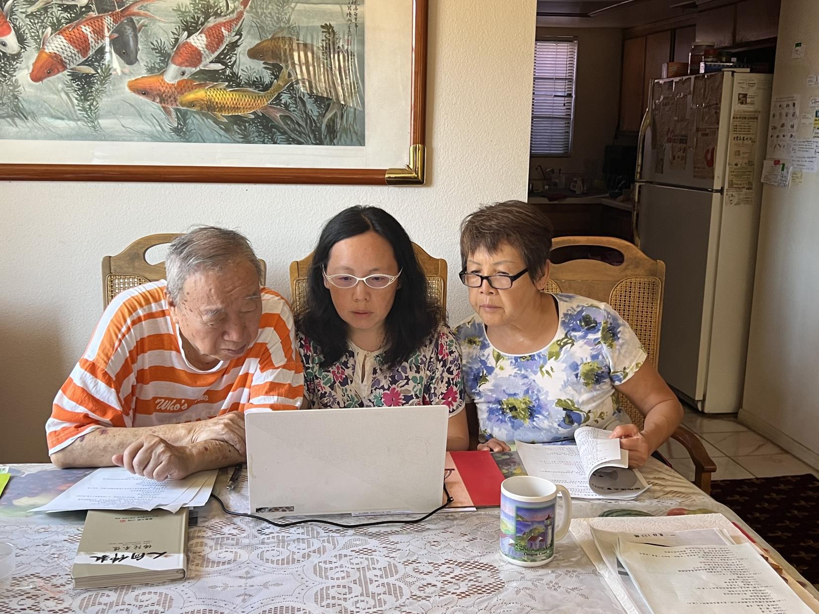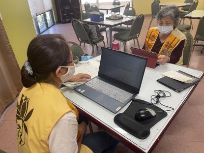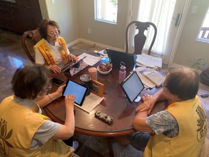 佛光山2022年全球佛學會考於8月28日舉行,聖地牙哥協會有40 位佛光人報名參加共襄年度盛舉。第四分會的鍾運仙,為了鼓勵父 母參加會考,特地開車到兩個小時車程外的洛杉磯,兩代同堂一起 考試。鍾運仙說,雖然英文閱讀能力比中文好,但還是決定用中文 參加,這樣就可以跟父母一起研習佛學。透過父母從旁協助,用中 文考試讓我可以從另一個視角了解佛法,是最優質的家庭團聚時間。