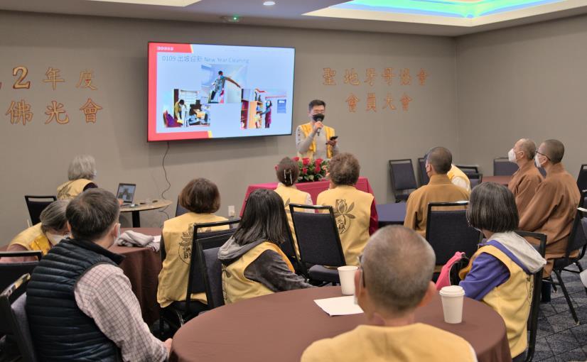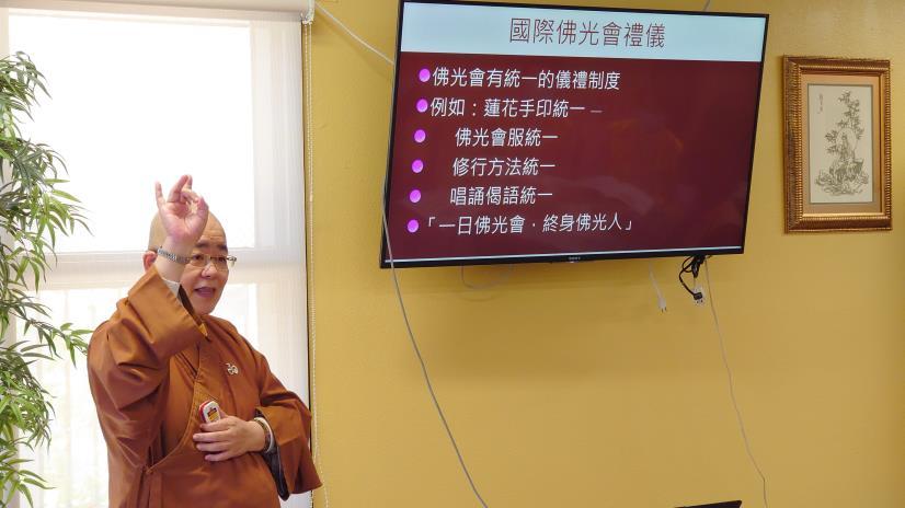幹部講習國際佛光會聖地牙哥協會於2023年6月4 日舉辦「佛光幹部會務講習會」,由國際佛光會世 界總會秘書處美洲主任覺仲法師授課指導,共有30 多位協會理事和所屬三個分會委員幹部參加,瞭解 佛光會宗旨性質與會務操作。課程內容分為二個階 段:第一階段透過網路YouTube影片,聆聽國際佛 光會世界總會秘書長覺培法師講說「國際佛光會的 性格與性質」;第二階段,由秘書處主任覺仲法師