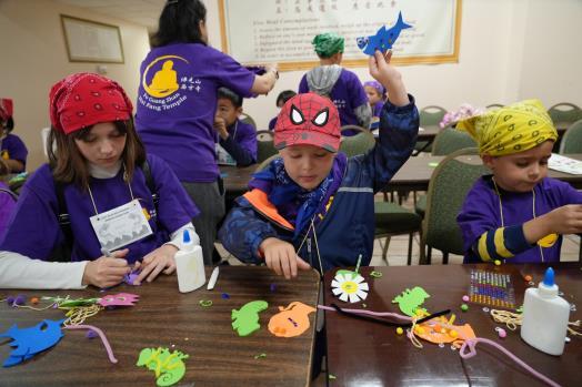 每年開設春秋兩個學期,以三好故事、美術、 讓佛法融入孩子心中。同時,由青少年 家長則參與成人英文課程或幫忙道