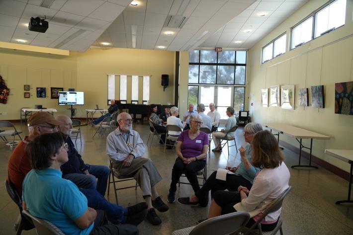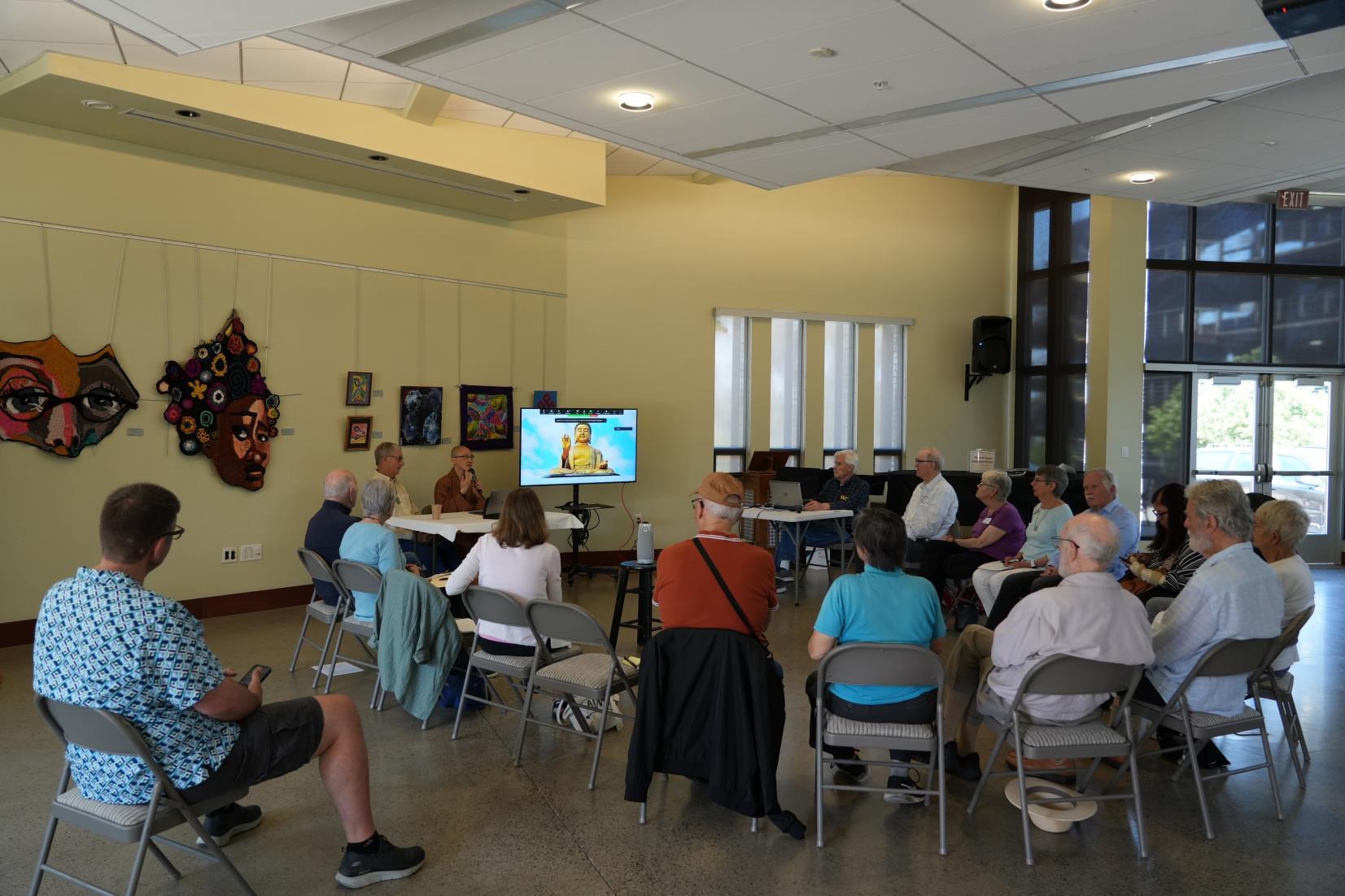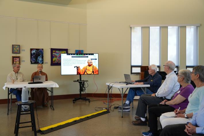 教堂講座佛光山西方寺監寺妙藏法師 和社會學榮譽退休教授Dennis Braun 博士, 於2023年6月17日在Unitarian Universalist Church of San Diego,進行演講對談,主 題為「擁抱黃金歲月」,探討佛教如何 幫助長者應對負面情緒 。 演講同時在 Zoom平台和教會內舉行,共37人參加。