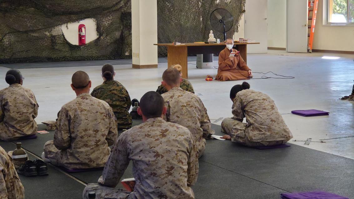 宗教時間海軍陸戰隊訓練基地周日上午的宗教時間,目前共 有11個宗教/宗派帶領共修,募兵可依自己相應宗教而選擇想去 參與的共修場所。在這11場所中,僅有一處由佛教帶領。