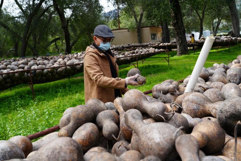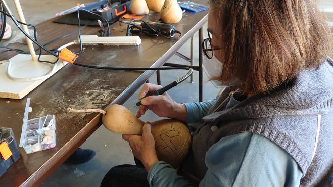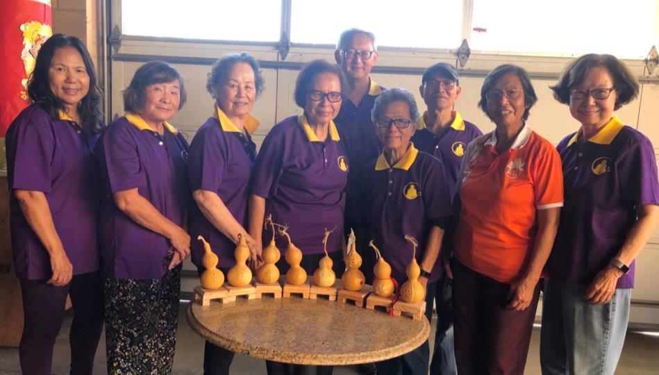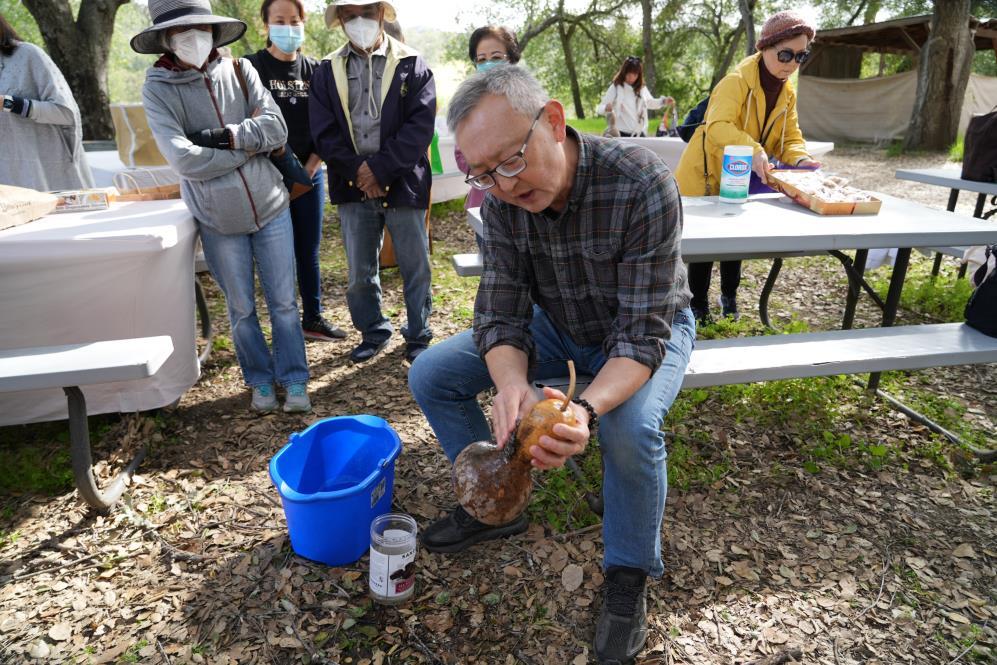 葫蘆雕刻班為了選購葫蘆,國際佛光會聖 地牙哥協會第五分會於2023春季開課前,舉 辦葫蘆農場參訪之旅,40位佛光人前往位於 Fallbrook的威爾本葫蘆農場 (Welburn Gourd Farm) 參訪,曲學蕃跟大家解說選購理想葫蘆 的方法,如何清理葫蘆等注意事項。