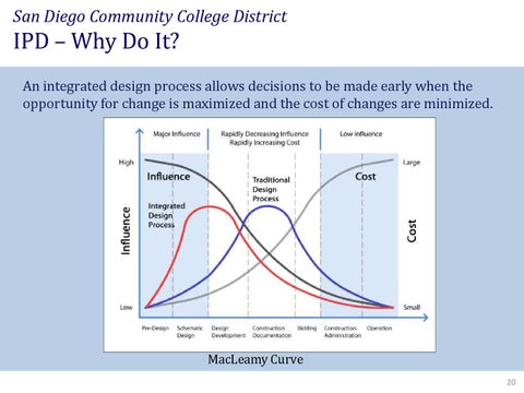 IPD – Why Do It? An integrated design process allows decisions to be made early when the opportunity for change is maximized and the cost of changes are minimized.