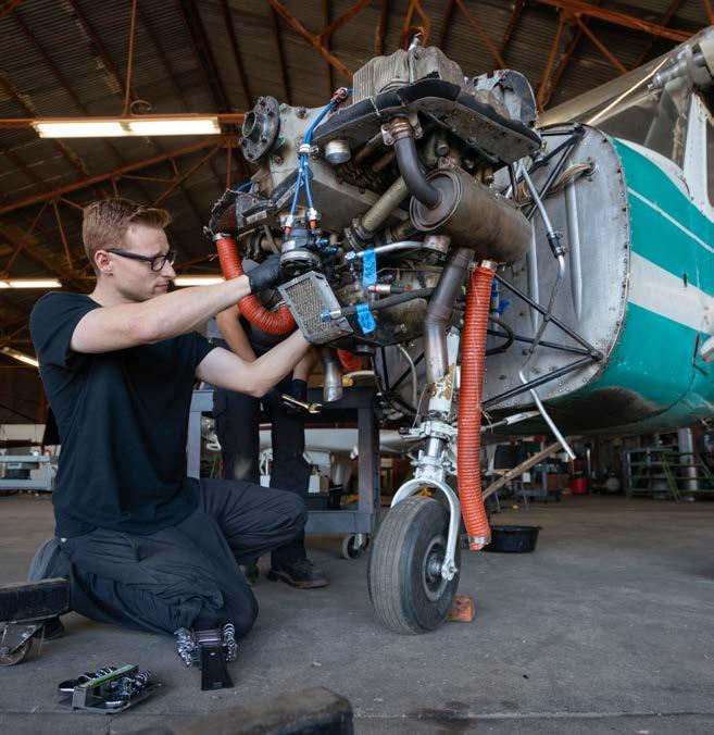“Everyone here has been very supportive,” said Forsing, who has learned more about reciprocating engines, fabric doping, the Rockwell hardness test, and rebuilding landing gears than she ever thought possible. “They are motivated by helping us learn.”
