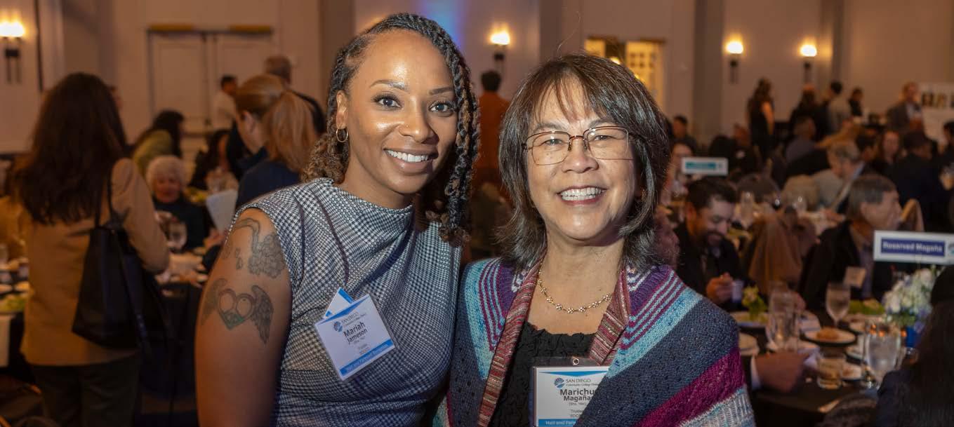With family, friends, and SDCCD employees looking on, the San Diego Community College District welcomed two new governing members during the December 19, 2024, Board of Trustees meeting. Community activist Mariah Jameson and retired San Diego Mesa College Professor Marichu G. Magaña replaced retiring Trustees Mary Graham and Bernie Rhinerson.