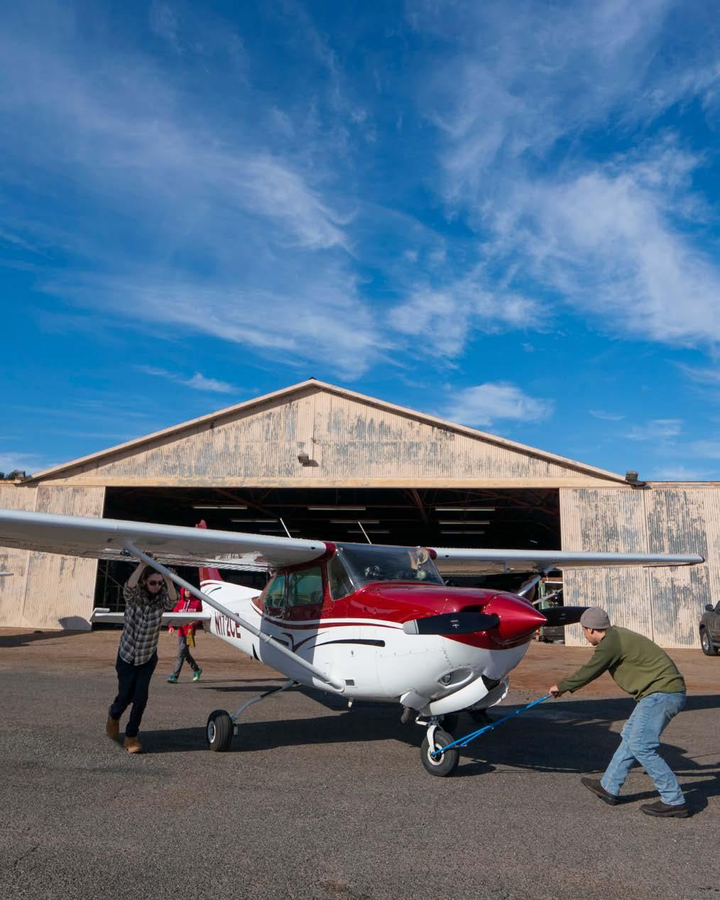 have the opportunity to get hands-on training on planes such as a single-engine Cessna 150. During an Aviation Operations class, students guide a plane from the school's hangar to be used to practice taxiing around the runway.