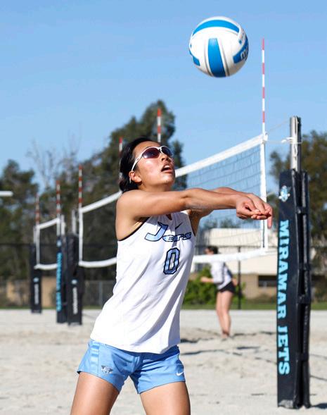The San Diego Miramar College women’s beach volleyball team kicked off its inaugural season on February 10, with the 15-member team’s first home match on a new on-campus, four-court outdoor sand facility on March 3. Miramar College joins five area colleges (San Diego City and Mesa colleges, Grossmont College, Palomar College, and MiraCosta College) to be among the 36 beach volleyball teams participating in the California Community College Athletic Association. Nancy Ros, the women’s volleyball coach, was tapped as the inaugural beach volleyball coach, as well.