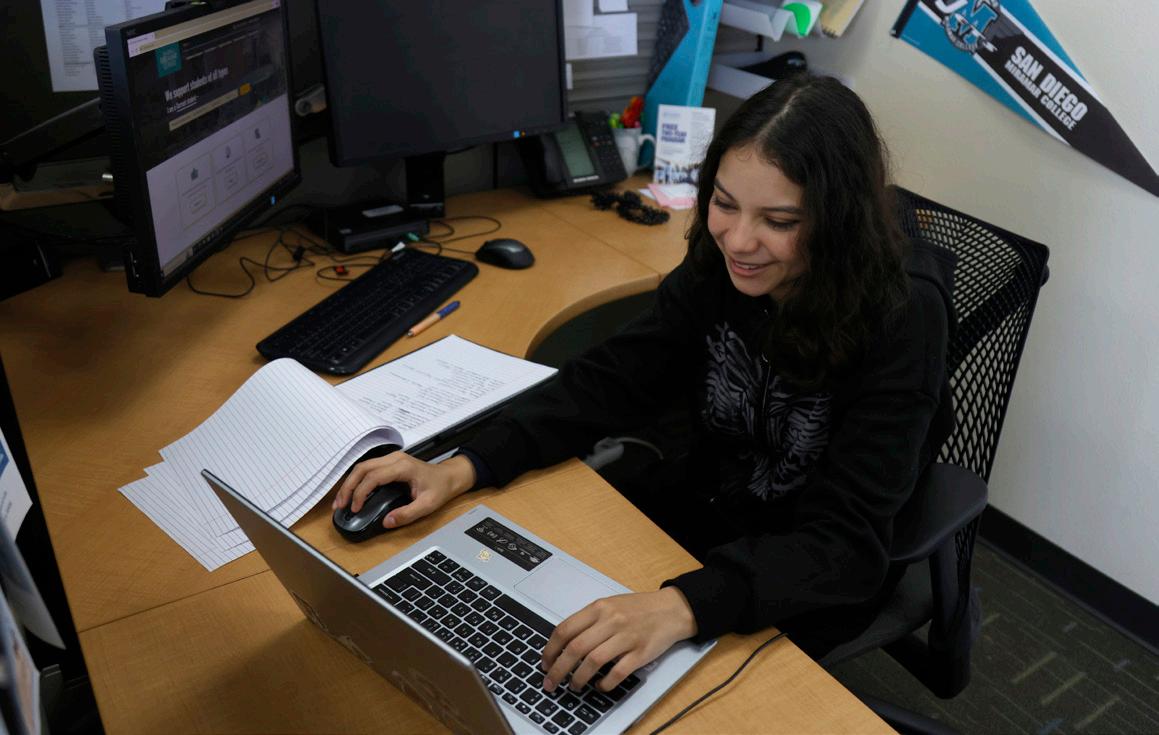 Breanna Hinojosa, who enrolled in college classes while still attending Mira Mesa High School, is now a Peer Mentor at Miramar College where she offers tips to other students on how to successfully navigate their education journey.
