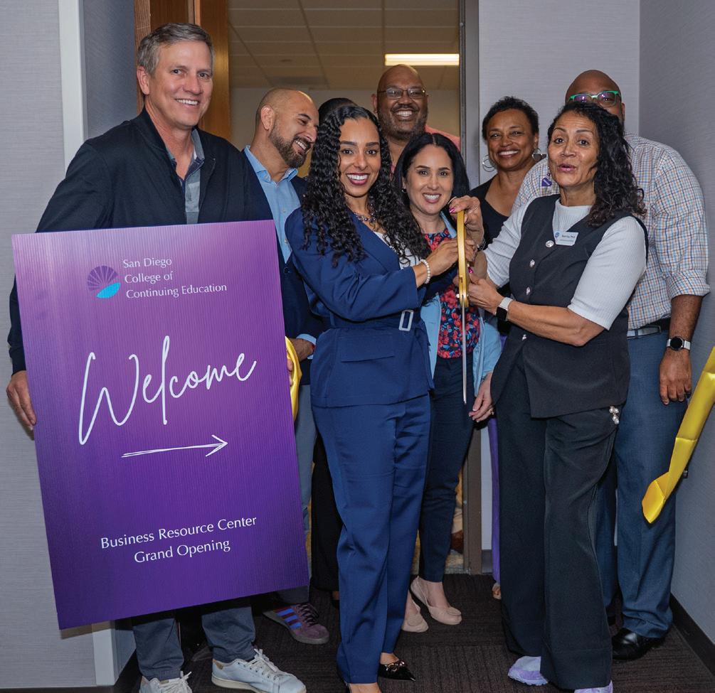 The new Business Resource Center replaces a previous one at the Jo & Vi Jacobs Center building on Euclid Avenue in Southeast San Diego that was purchased by San Ysidro Health in 2024. The pending sale prompted Alex Waters, the director of the Jacobs Center’s Business Resource Center, and Dr. Tami Foy, CEO and Executive Director of the San Diego College of Continuing Education Foundation, to explore the possibility of transitioning the center to the César E. Chávez Campus. Among the programs at the new center: workshops on a wide range of topics relevant to business owners, such as artificial intelligence, understanding business taxes and transitioning from employee to business owner; small business coaching; business needs assessments; and a fourmonth, business accelerator program designed to focus on the fundamentals of business.
