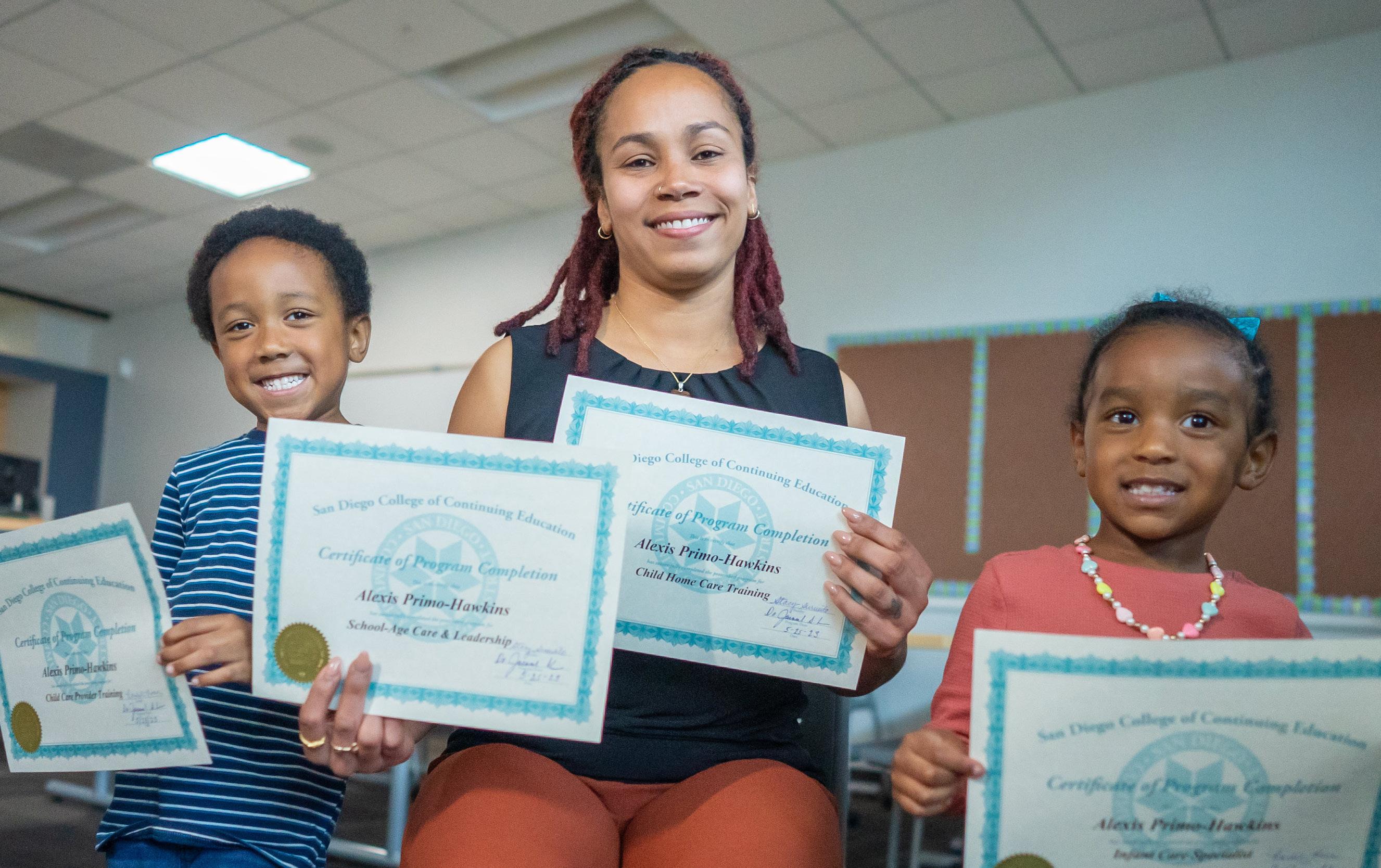also taking classes at San Diego Mesa College, where she’s on pace to graduate with an associate degree next fall. PrimoHawkins has plans to reopen her home daycare and work with community organizations focused on early childhood education.