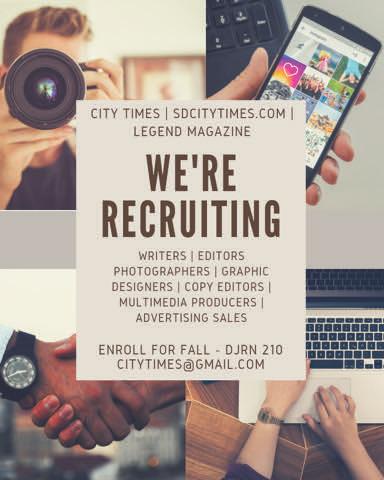 D I STRI CT P O L I CY STA TEM EN T: Th i s p u b l i c a t i o n i s p r o d u c e d a s a l e a r n i n g e x p e r i e n c e u n d e r Sa n D i e g o Ci t y Co l l e g e ?s D i g i t a l Jo u r n a l i sm p r o g r a m A l l m a t e r i a l s, i n c l u d i n g o p i n i o n s e x p r e sse d h e r e i n , a r e t h e so l e r e sp o n si b i l i t y o f t h e st u d e n t s a n d sh o u l d n o t b e i n t e r p r e t e d t o b e t h o se o f t h e c o l l e g e d i st r i c t , i t s o f f i c e r s o r e m p l o y e e s