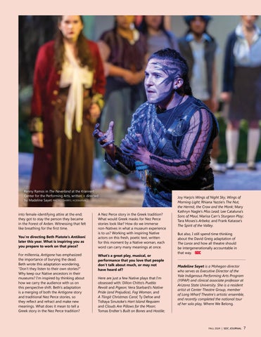 For millennia, Antigone has emphasized the importance of burying the dead. Beth wrote this adaptation wondering, “Don’t they listen to their own stories?” Why keep our Native ancestors in their museums? I’m inspired by thinking about how we carry the audience with us on this perspective shift. Beth’s adaptation is a merging of both the Antigone story and traditional Nez Perce stories, so they reflect and refract and make new meanings. What does it mean to tell a Greek story in the Nez Perce tradition?