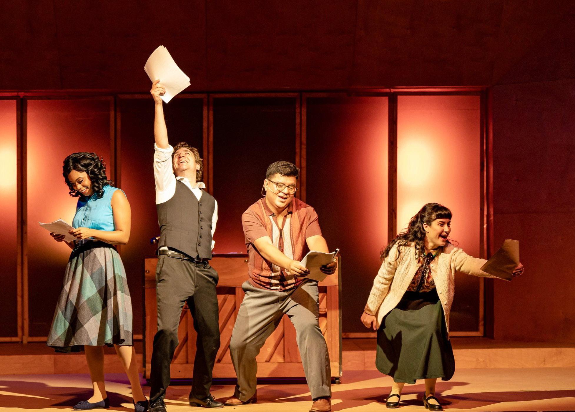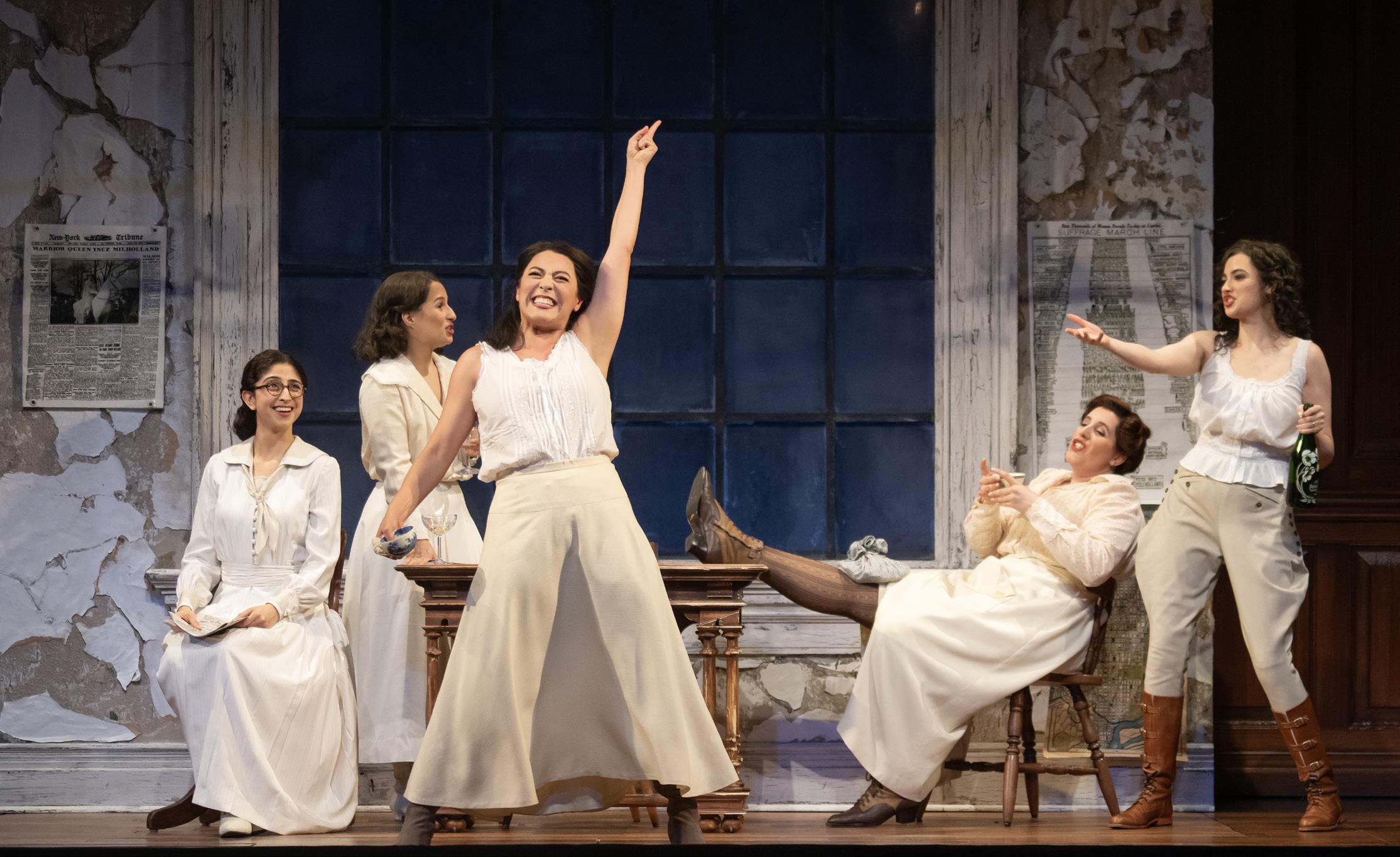 Hannah Cruz + company in Suffs on Broadway, directed by Leigh Silverman