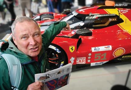 Peter Butler evidently gibbering that he is in front of the object of his desire, the Ferrari 499P at Le Mans at La Sarthe in France, while holding the Redstone Review, June 2024. (Photo Credit: David Norris) Take the Redstone on your next trip and send us your photos showing where the Redstone has traveled. Send your photos to redstarnews5@gmail.com.