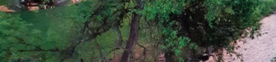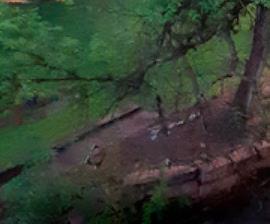 In the rocks just south of the Peterson bridge one may find bits of charred wood and leaves that come from a species of palm