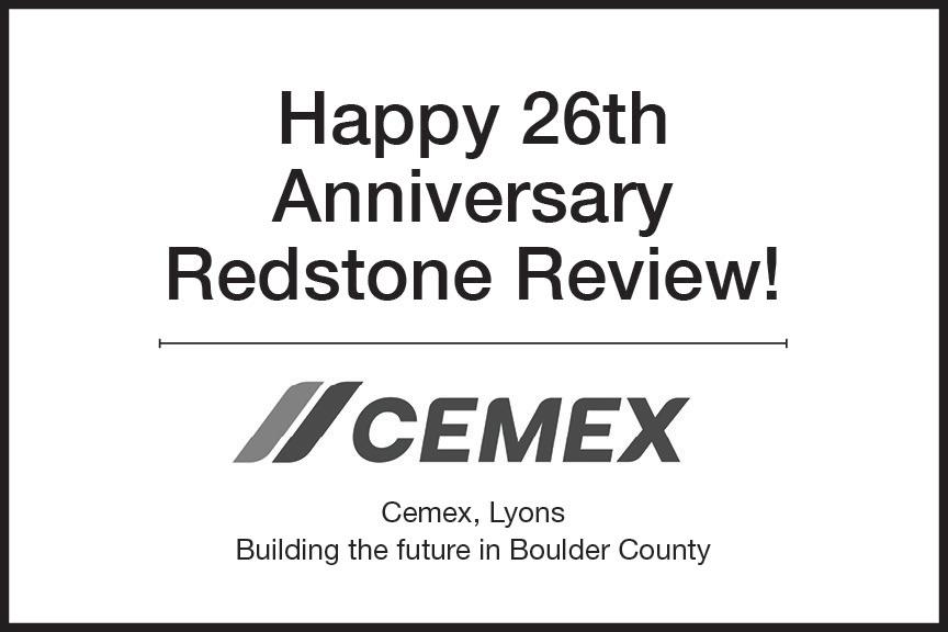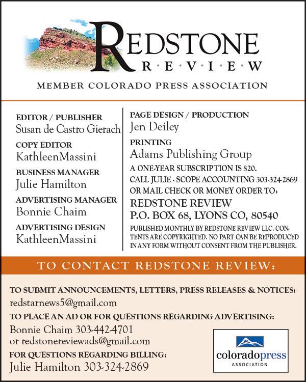 Lastly, let’s wish a happy 26th birthday to this fine publication. Local newspapers are certainly an endangered species, and we are so fortunate to have the Redstone Review in Lyons. Kudos to Susan and her talented staff for keeping us all in the know, and thank you to the advertisers who make this possible.