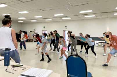 Children rehearsing while wearing masks. (Photos courtesy of San Diego Junior Choreographer Emily Shackelford running a number. Choreographer Emily Shackelford observing “Frog and Toad” scene.