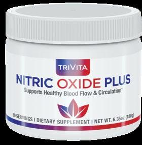 CALL 1-800-991-7116 VISIT TRIVITA.COM ALL ORDERS OVER $89 GET FREE STANDARD SHIPPING A NEW YEAR’S RESOLUTION YOU CAN KEEP! • Improved circulation with healthy blood flow • A natural energy boost to do the things you love • Healthy blood pressure levels • Healthy support for your cardiovascular system Experience Improved Circulation, Healthy Blood Flow And More Energy! Energize Your Life with the Miracle Molecule On Your Entire Order when it Includes Nitric Oxide Plus! * *OFFER EXPIRES 1/31/23 5X VITAPOINTS* GET SEE PAGE 9 These statements have not been evaluated by the Food & Drug Administration. These products are not intended to diagnose, treat, cure or prevent any disease. 3