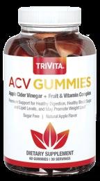PRSRT STD U.S. Postage PAID TriVita, Inc. ID NUMBER SOURCE CODE 16100 N. Greenway Hayden Loop, Suite E-190 Scottsdale, Arizona 85260 Printed in the U.S.A. CALL 1-800-991-7116 VISIT TRIVITA.COM FREE STANDARD SHIPPING ON ALL ORDERS OVER $89 Try New Gummies Today! They’re a Hit! ACV (Apple Cider Vinegar) Gummies Peaceful Sleep Gummies NEW Valerian root to help you fall asleep faster and sleep more soundly. Sugar free and naturally flavored, too. See page 35 NEW Apple cider vinegar for healthy digestion, healthy blood sugar and lipid levels, and may promote weight loss. Plus, it’s sugar free and naturally flavored. See page 34