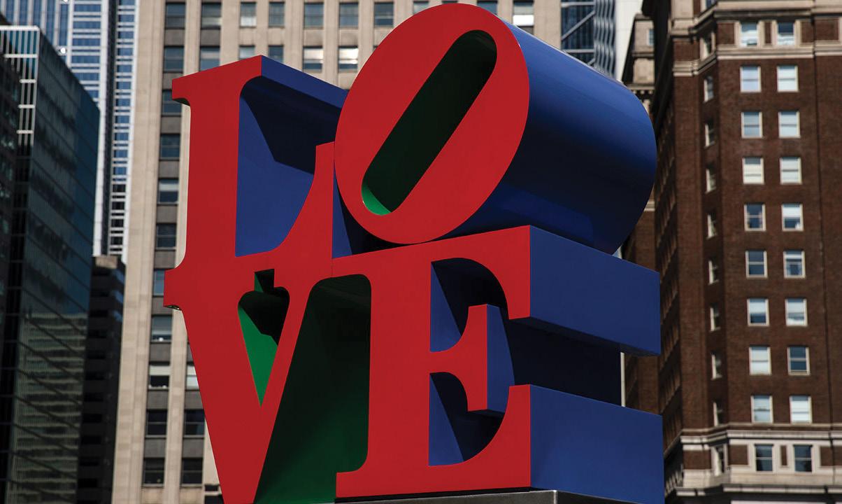 Robert Indiana’s LOVE sculpture in John F. Kennedy Plaza, Philadelphia. Photo: Jacqueline Larma, AP.