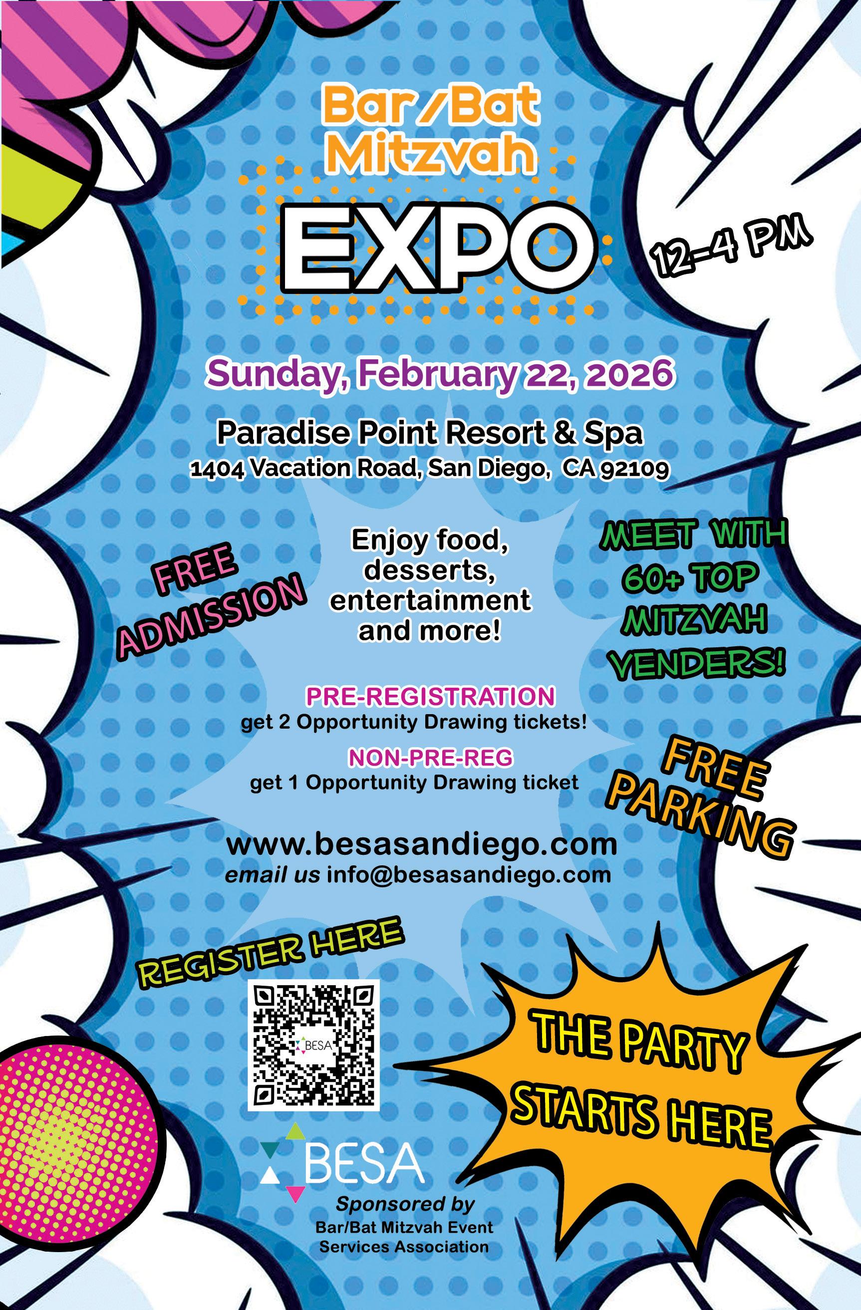 Mazel Tov to Leo Arenson on being called to the Torah as a Bar Mitzvah in New York City on Nov. 8. Leo is the son of San Diego native Adam Arenson and Rabbi Rebecca Rosenthal. Leo’s siblings are Simon and Maddie. Grandparents are Penny and Paul Arenson, Ruth Jarmel, and Irving Rosenthal