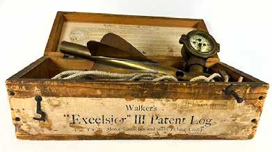 in the nineteenth century. The brass veined “fish” would spin when thrown over the stern and towed. The number of turns would be recorded and when retrieved could be read by the mariner to estimate speed and distance travelled.