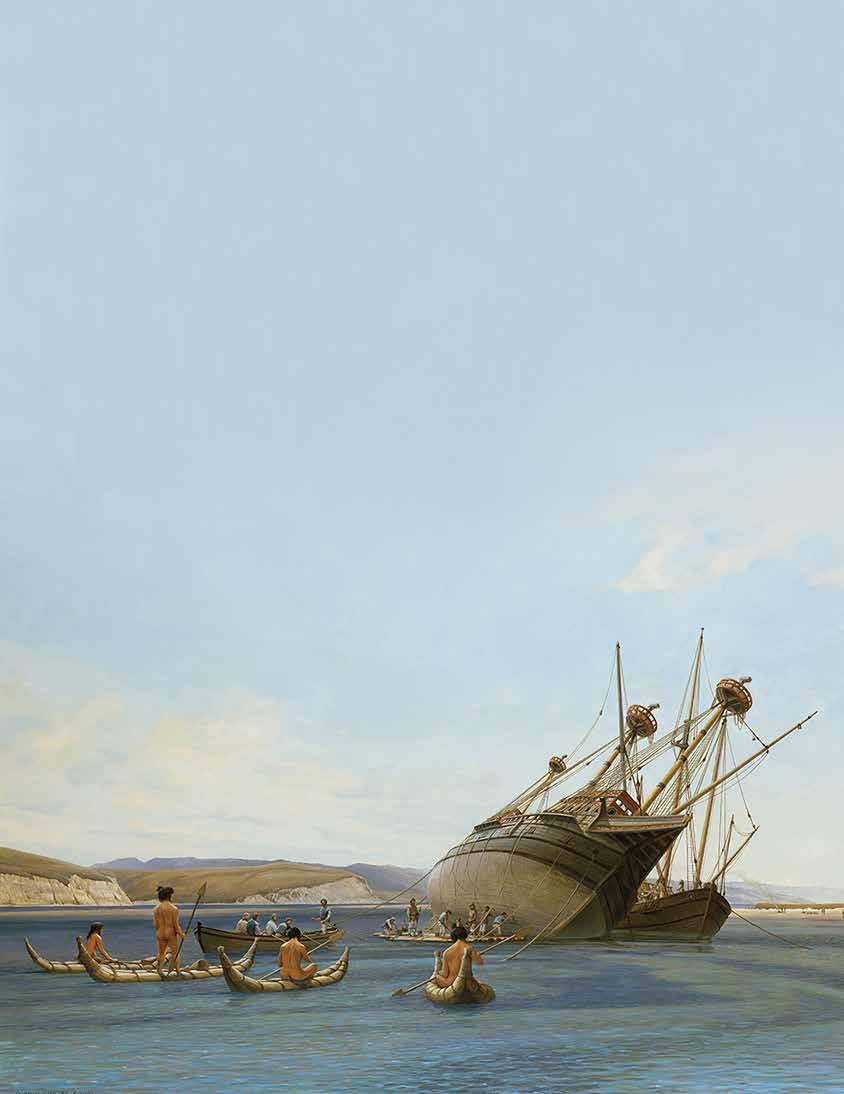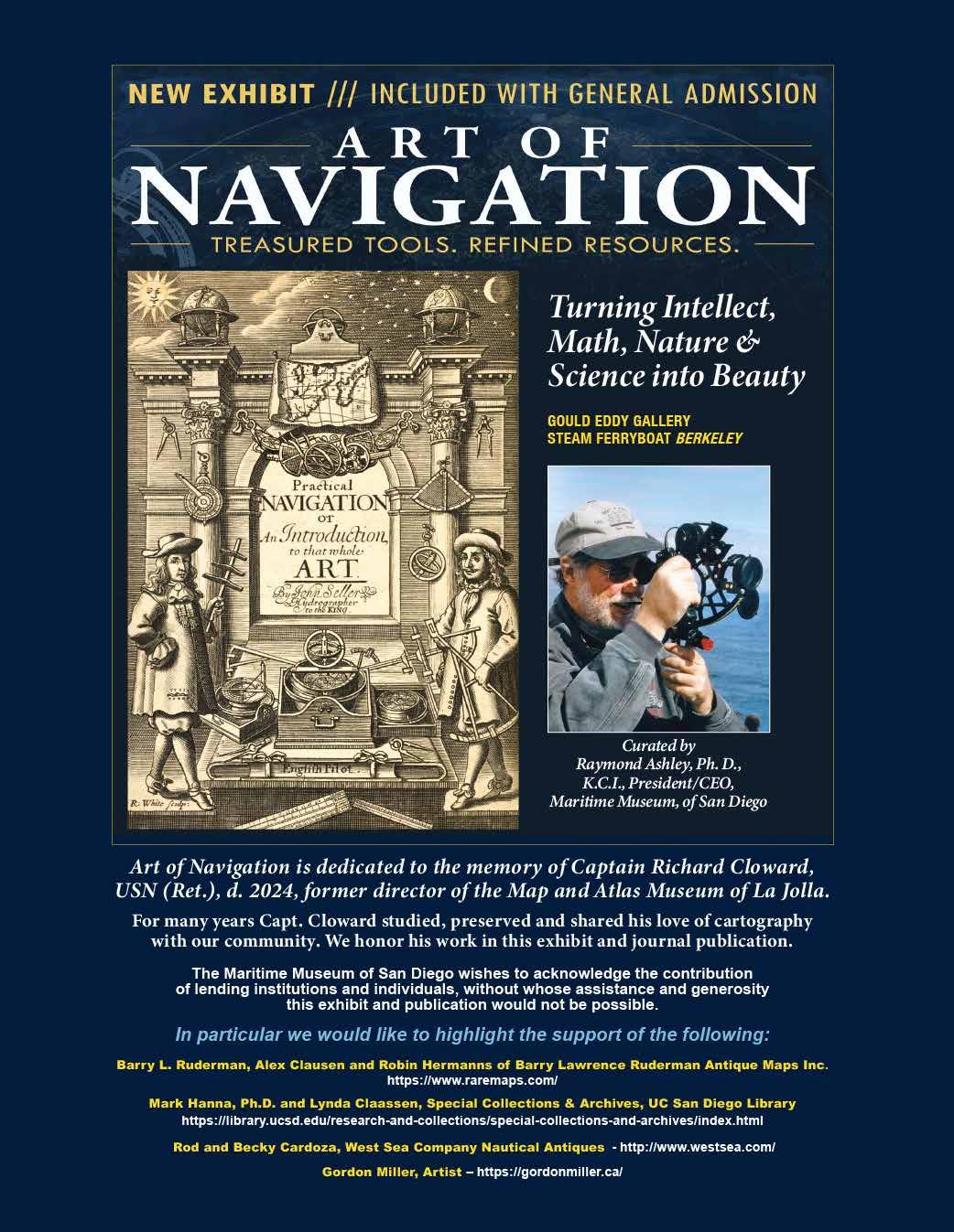 Art of Navigation draws upon some of the finest and most beautiful examples extant of period instruments, charts, and voyage accounts, illuminated by the work of documentary maritime artist Gordon Miller, embellished by exquisite models of the storied ships that conducted the enterprise from the Museum’s own collections, and even majestic full-scale operational versions such as the galleon San Salvador, man-ofSurprise, schooner Californian, and the museum flagship Star of India, veteran of twenty-one navigations around the earth.