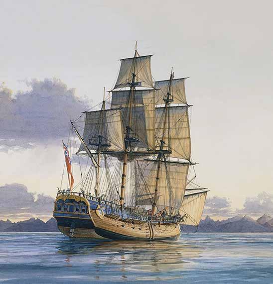 The Endeavour , a name synonymous with the British exploration of the Pacific, began her life as a humble collier – the Earl of Pembroke – launched in 1764. In 1768 the British Royal Navy purchased her with the express purpose of refitting her for a voyage of scientific discovery to the South Sea. The former collier’s commodious hull provided her with ample room for the storage of supplies. Her relatively shallow draft was