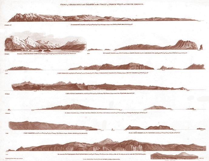 George Vancouver. Views of Headlands and Islands on the Coasts of Northwest and South America. Published in London, 1798.