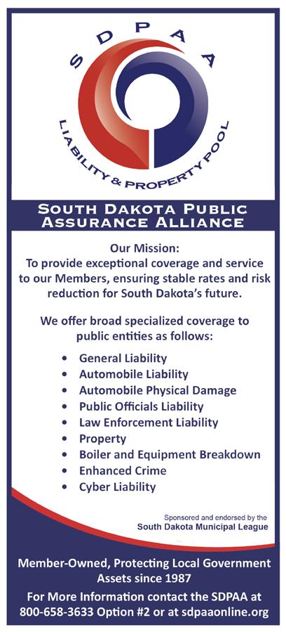 In addition to legislative priorities, our staff, board, and affi liate boards have been hard at work developing a three-year strategic plan that will guide the League’s efforts well into the future. This plan focuses on strengthening advocacy, enhancing member services, and building a unified voice for all South Dakota cities. We are excited to officially launch this roadmap after the first of the year and look forward to sharing the details with you soon.