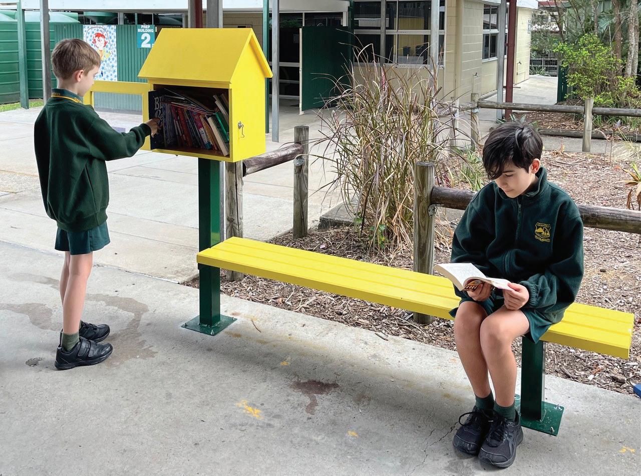 “What we loved about this particular design is having a bench attached so that students can have somewhere to sit and browse or chat about books. The bench space provides an opportunity for connection, and possibly new friendships. In a nutshell, the school book exchange unit helps foster literacy, sustainability and engagement. You never know what cool books you might find in there!”