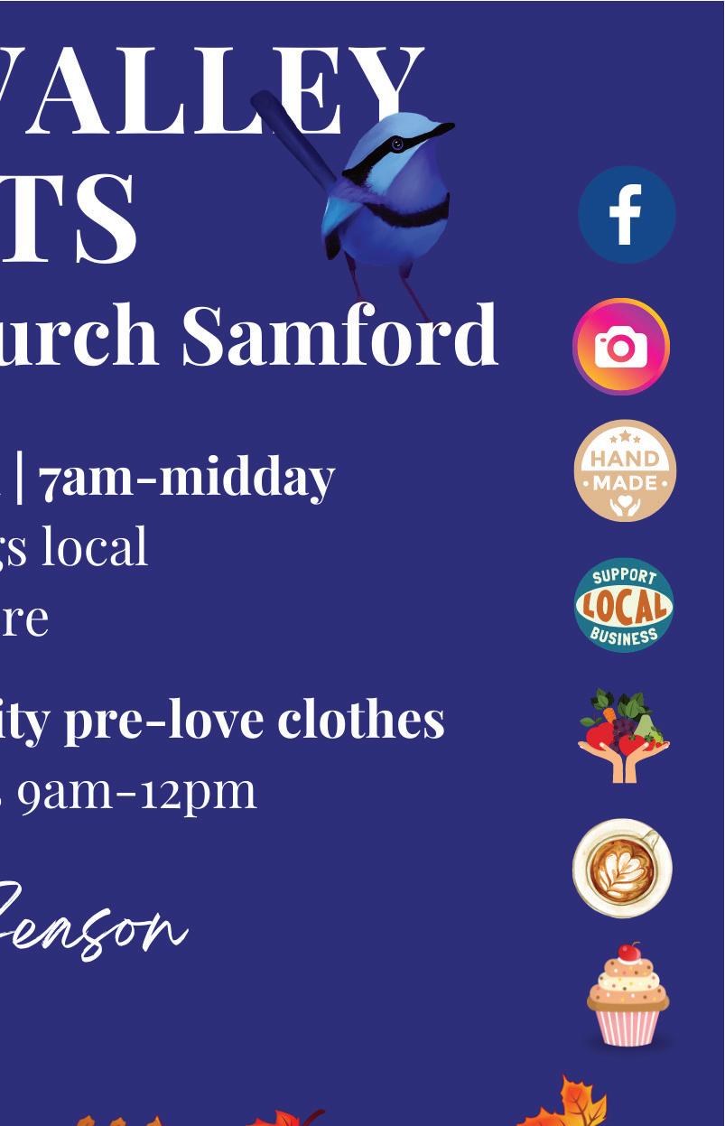 05 APRIL 2024 NEXT DEADLINE THURSDAY 11/04/2024 Plant Nursery • Cafe • Gifts & Homewares • Yarn Shop Health & Beauty Services • Book Shop ... and even more! Find more info & open hours at www.lifestylecentre.co 225 Mt Glorious Rd, Samford ph. 3289 6276 Shop local at the Lifestyle Centre