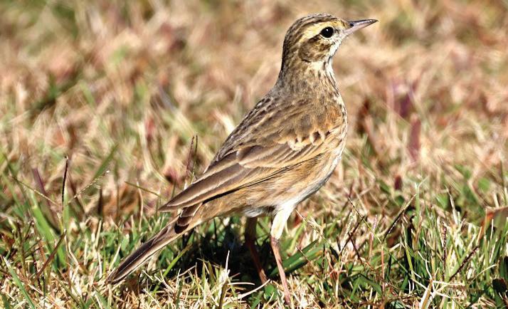 A group of martins hawking over the soccer fields and cow paddocks caused some identification discussion (looking into the morning sun), but at least one was a Tree Martin with its dark crown. It was strange to see a lone Chestnut-breasted Mannikin near the waterhole: these finches are usually in flocks. Now that the mown grass in the Parklands is beginning to brown off in the dry conditions, the Australian Pipits are becoming harder to spot (see photo). Full details of the survey can be found on the eBird app.