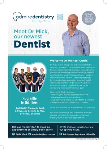 OPEN: Visit our website to view our opening hours. 2/6 Nepean Ave, Arana Hills 4054 THE VILLAGE PUMP 15 APRIL 2022– Page 25
