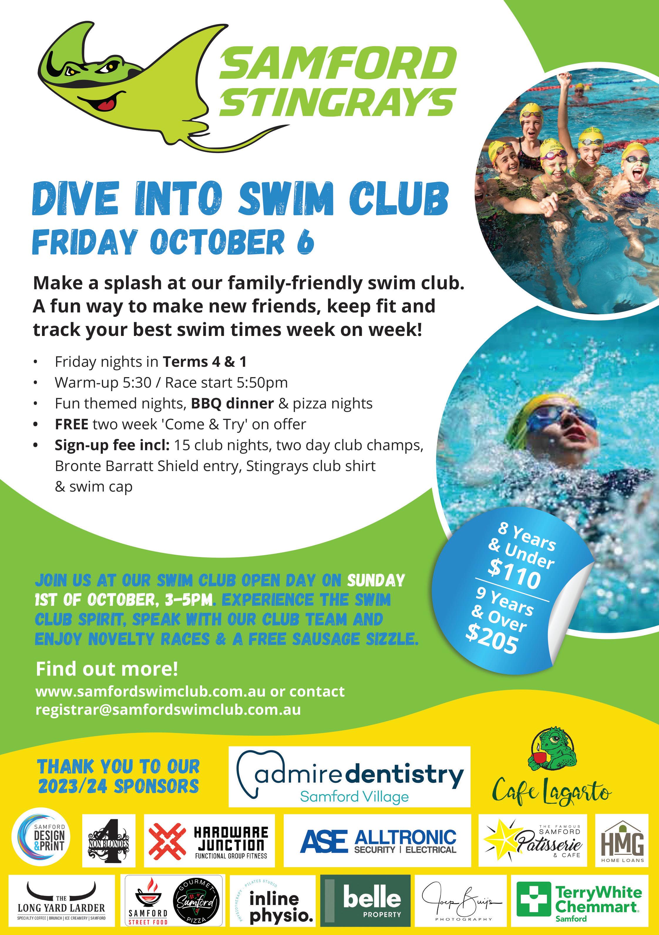 Swimming Club Contact Anna Wilson 0427 659 388. president@ samfordswimclub.com.au