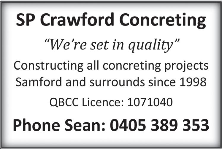 Rotary Club of Samford Valley 6.45pm second and fourth Tuesday. Contact President Rob Robinson 0488 770 419