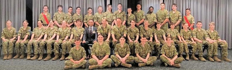 Awards on the night were Cadet of the Year - won by Cadet Ross, NCO of the Year - won by Cadet Cpl Van Der Leur, OC Award - won by Cadet Cpl Hackenberg, and the Spirit of Anzac Award - won by Cadet Larsen. There were ten promotions during