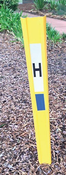 Hydrants can be identified by cast iron covers which are mostly painted yellow. These covers are located on footpaths. Not all properties have a hydrant. Road markings such as blue reflective markers, yellow triangles or arrows and yellow posts with a “H” can be used to locate a hydrant.