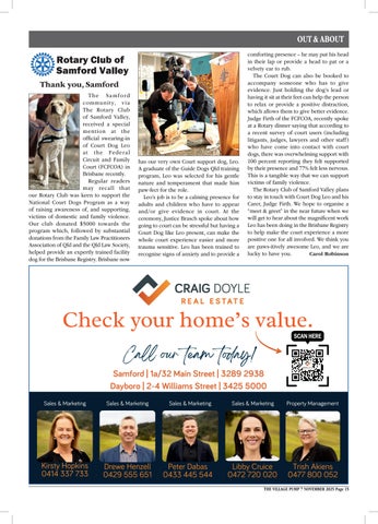 Rotary Club of Samford Valley 6.45pm second and fourth Tuesday. Contact President Rob Robinson 0488 770 419
