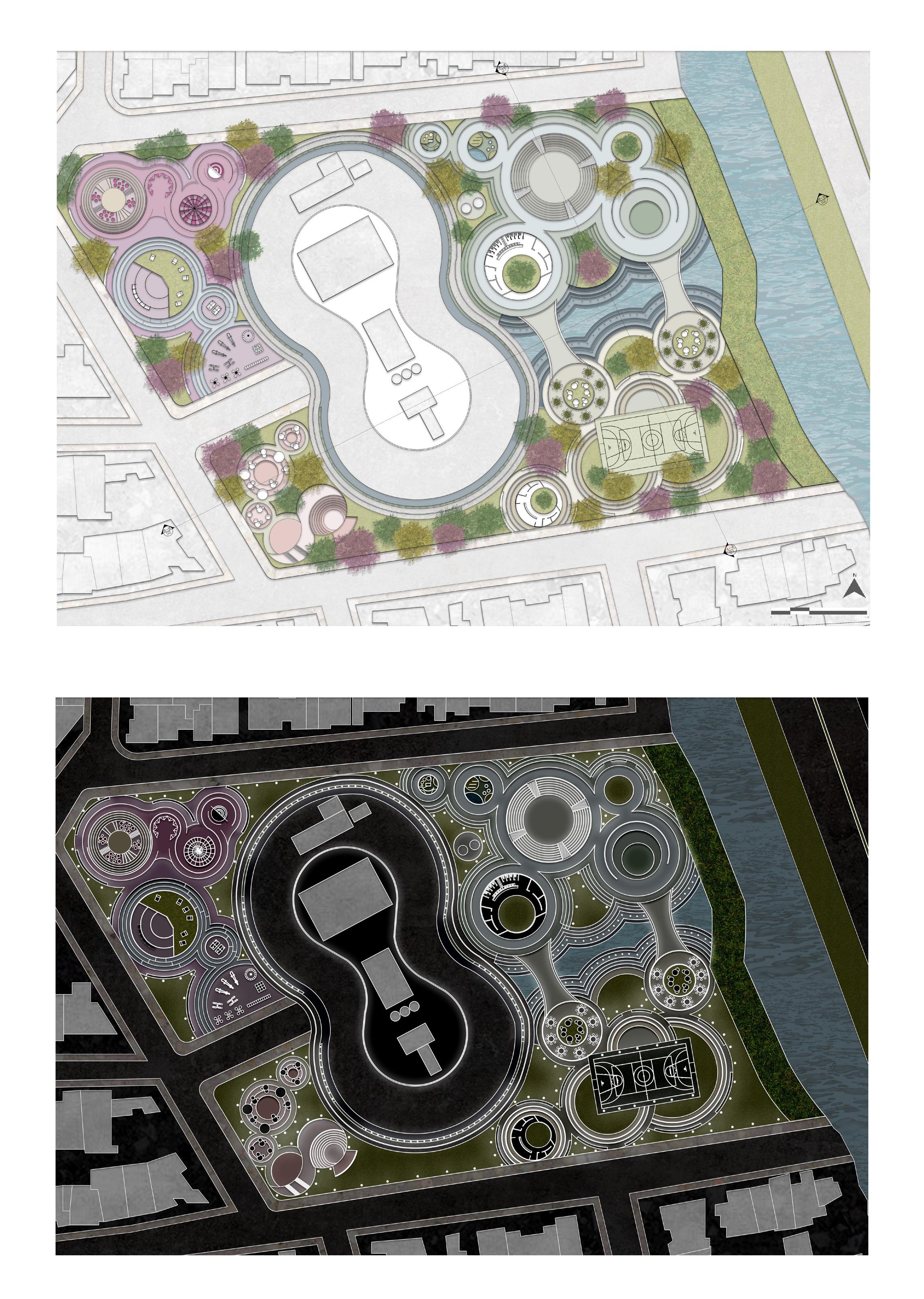 This project represents an opportunity to recover the public space in one of the most disenfranchised neighborhoods in Barranquilla. It proposes to recover a residual water pumping station to make it usable to the community, taking inspiration from the “UVAS” in Medellin. A Metallic structure with the shape of an infinite sign separates what would be the private area and the public park surrounding it. “Barrio La Luz” Is one of the poorer areas of the city and takes its name from the fires that people made in the ditch when burning trash. This project plans to pay homage to that name by providing a public space usable both during day and night, using various lighting fixtures directly integrated into the design giving not only a new park that the community needs but also strengthening their identity.