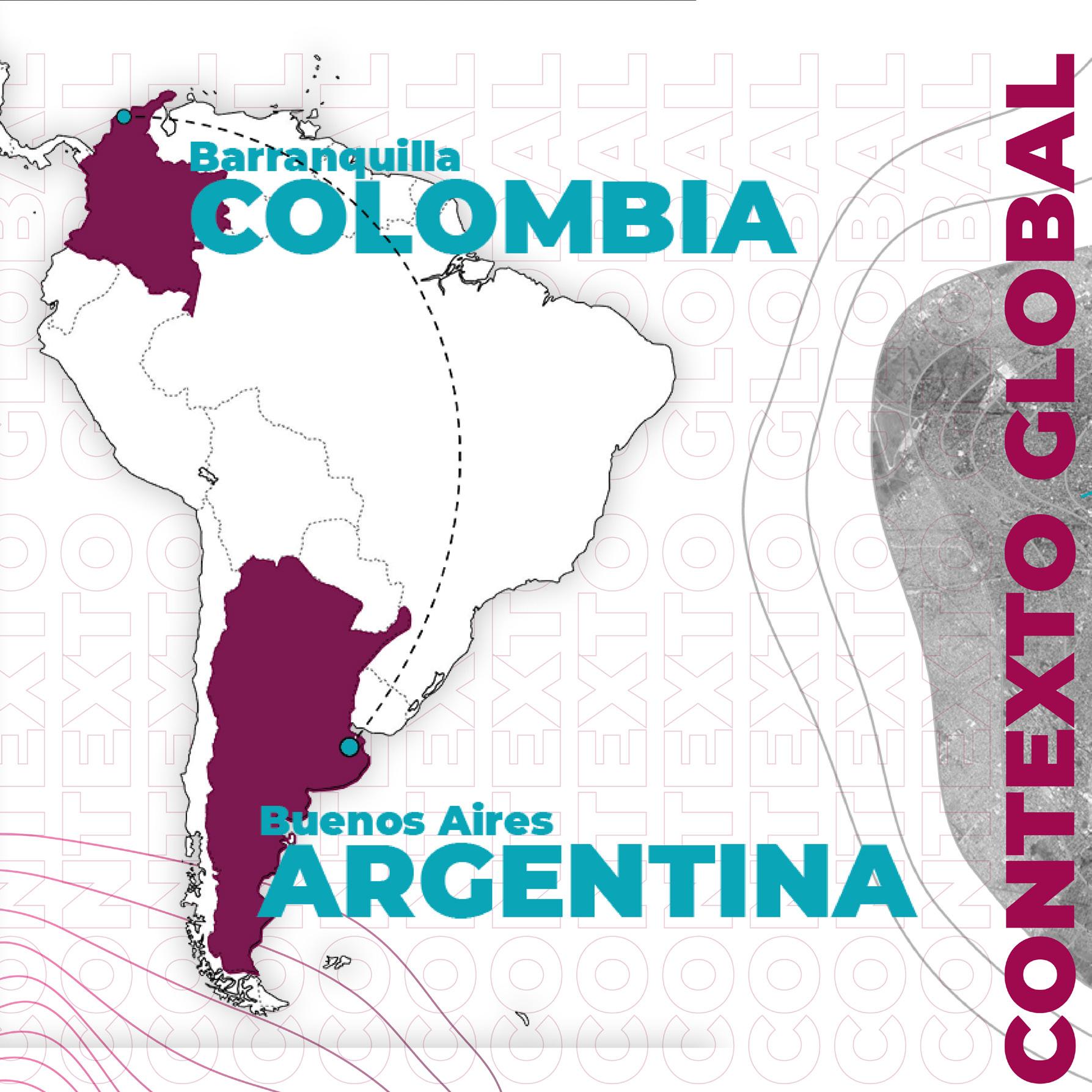 During the year 2020 Universidad del Norte housed a collaborative space with Universidad de Palermo in Buenos Aires Argentina. The purpose of this exchange was to allow students to design with a different urban and cultural context in mind, while also considering the challenges that quarantine posed during the COVID-19 pandemic and how this would transform our habitats and homes. As part of the creative team promoting the event we were tasked with creating visual media that would show the exchange between two very different cities, showcasing differences and similarities. Pieces like the collage below are composed by Architectural spaces that are representative of each city. As well as waves that represent tectonic vibrations and adding digital touches to represent the challenge that the quarantine itself posed during the event.