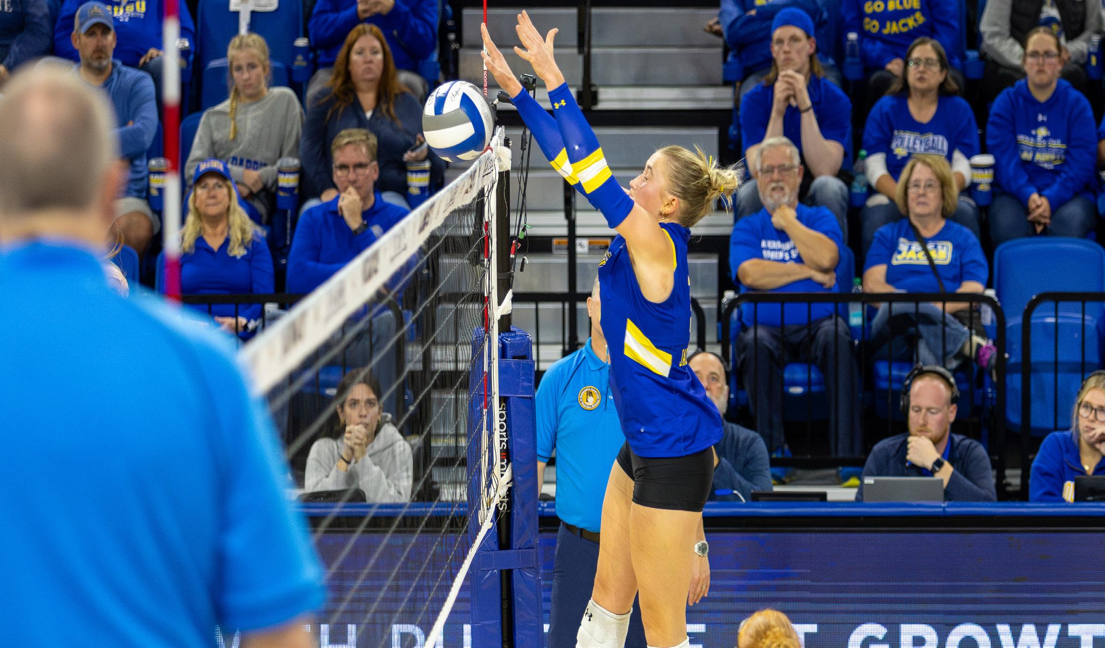 In the match, sophomore Madison Burr led the Jacks with 11.5 points on eight kills and four blocks.