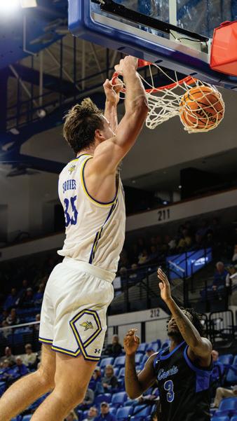The South Dakota State men’s basketball team rolled to a 95-72 win over the Oral Roberts Golden Eagles on Saturday scoring the most points they have in a Summit League game all season. Read more about the win on pgs. 14-15.