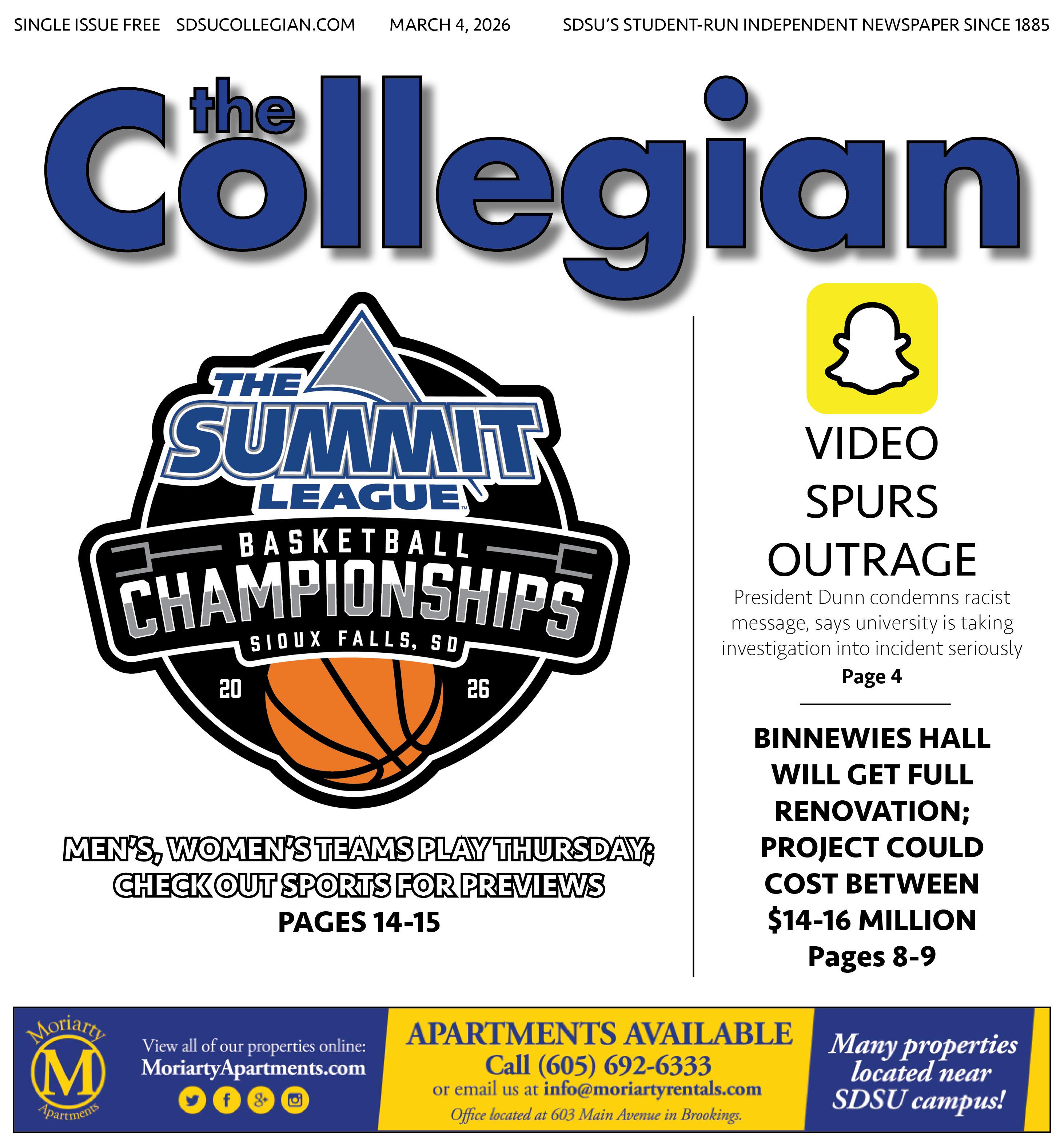 Collegian Media will have live playby-play coverage of all Jackrabbits game with Ben Anderson starting Thursday at Noon when the 2ndseeded SDSU women take on 7thseeded Kansas City and later that night when the 7th-seeded SDSU men match up with 2nd-seeded St. Thomas at approximately 8:30 p.m.
