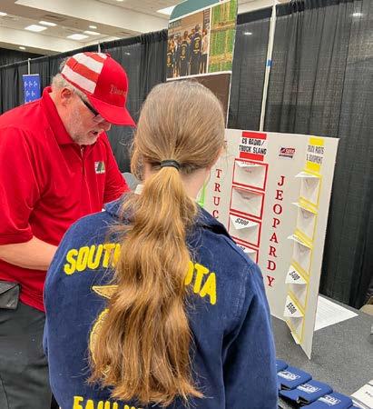 SD Road Team Captain Gary Schmidt talks with student at the FFA Career Carnival in Brookings, SD.
