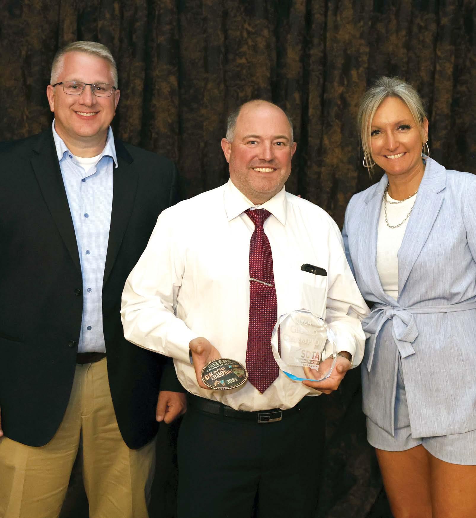 Pictured L to R: Captain John Stahl, 2024 Grand Champion Josh Kelley, and SDTA President Christine Vinatieri-Erickson during the South Dakota TDC’s awards banquet.