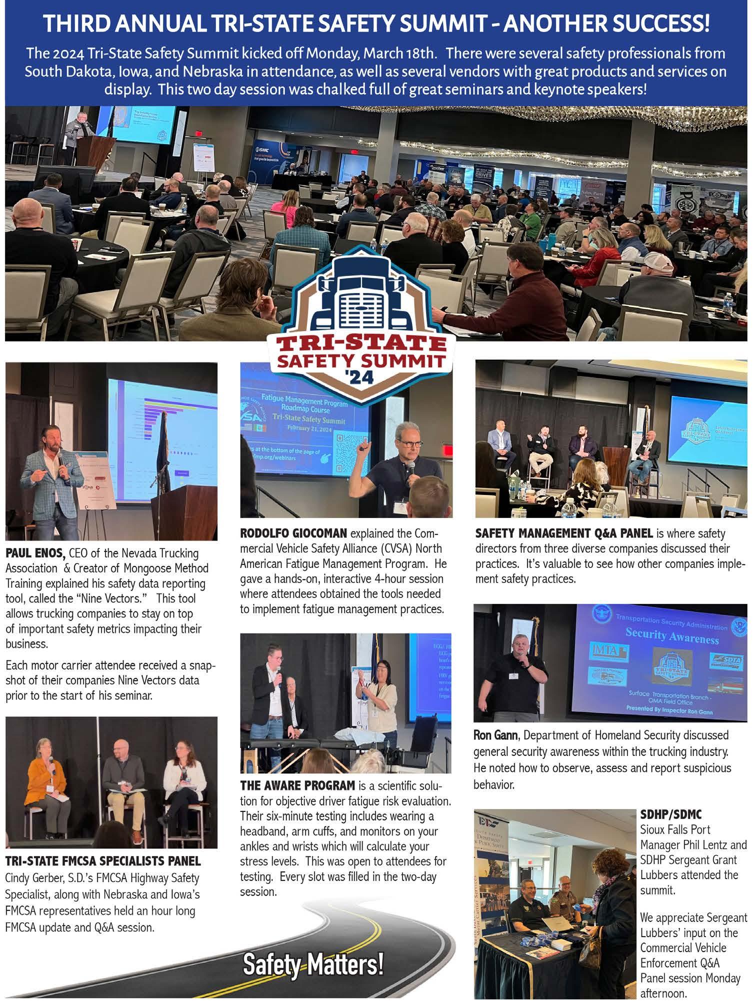 m Owner m Safety Manager m Controller m Driver Lounge ROUTE TO: Tr ucking ’s Voice In South Dakota Since 1935 MARCH 2024 BLACK HILLS LOG HAULERS 2024 LEGISLATIVE RECAP Page 11 THIRD ANNUAL TRI-STATE SAFETY SUMMIT – ANOTHER SUCCESS! Page 16