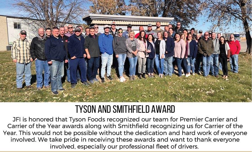 Johnson Feed,Inc. (JFI) is honored that Tyson Foods recognized their team for Premier Carrier and Carrier of the Year awards along with Smithfield recognizing them for Carrier of the Year. This would not be possible without the dedication and hard work of everyone involved. They take pride in receiving these awards and want to thank everyone involved, especially their professional fleet of drivers!